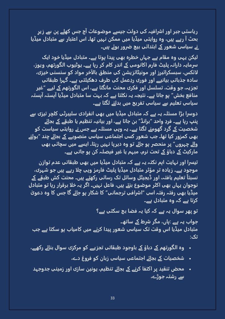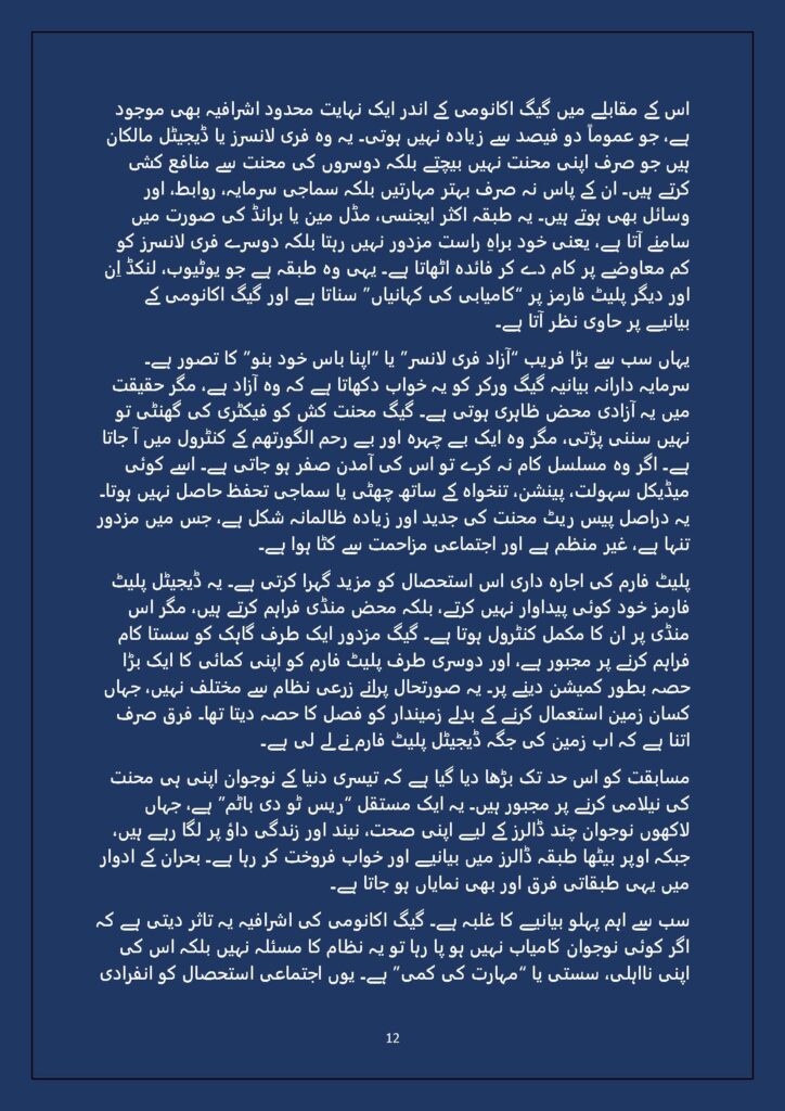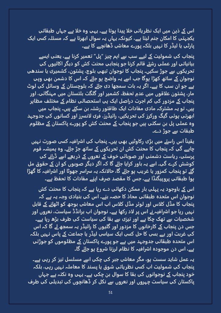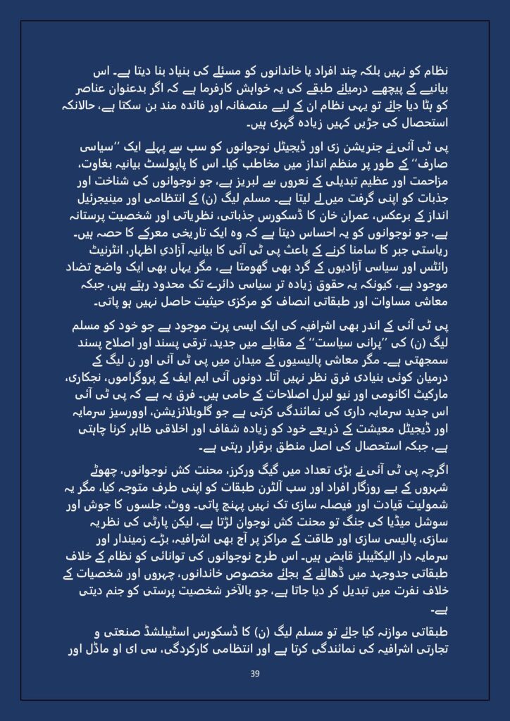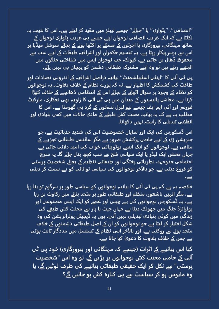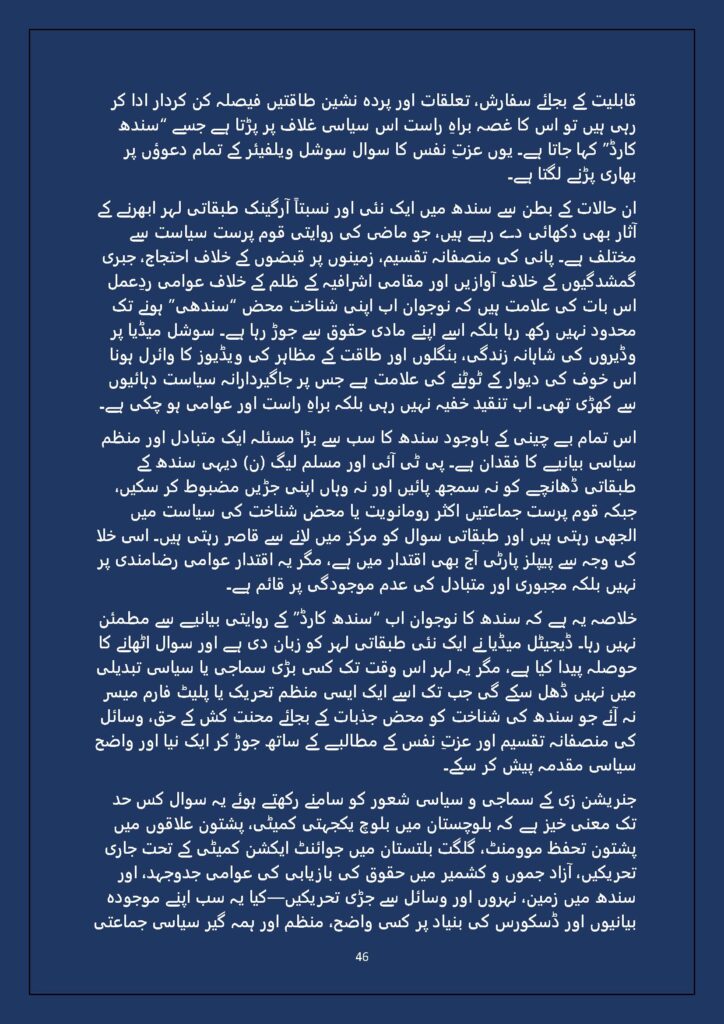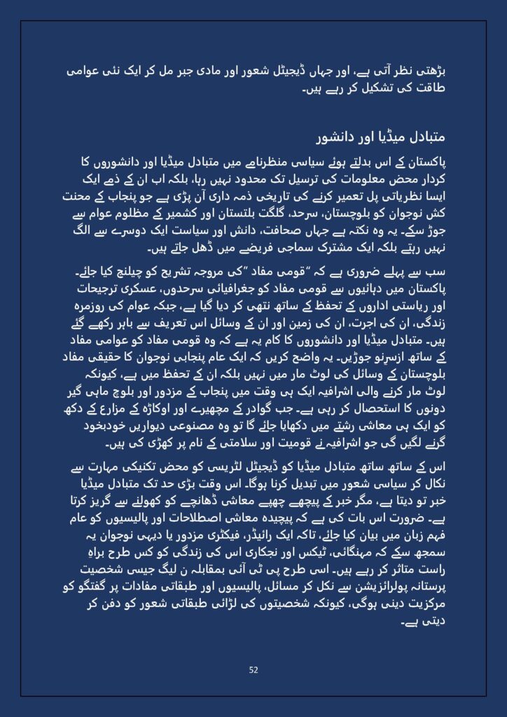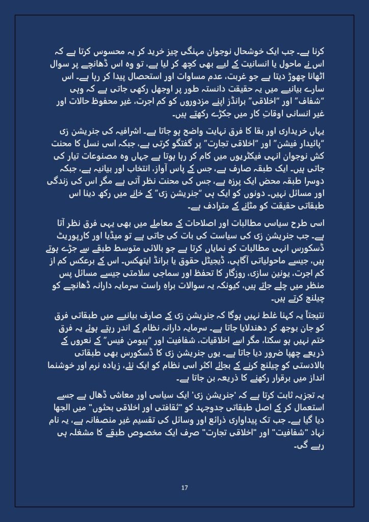 Grounded in Pakistan’s political economy yet resonant across the Global South, this study situates Gen Z within ongoing material struggles—from gig workers and urban laborers to peripheral regions resisting dispossession. It asks urgent questions: Can emerging movements transcend identity fragmentation and evolve into class-based solidarity? Will digital visibility translate into material power? And can a generation move beyond algorithmic illusions toward collective political agency?