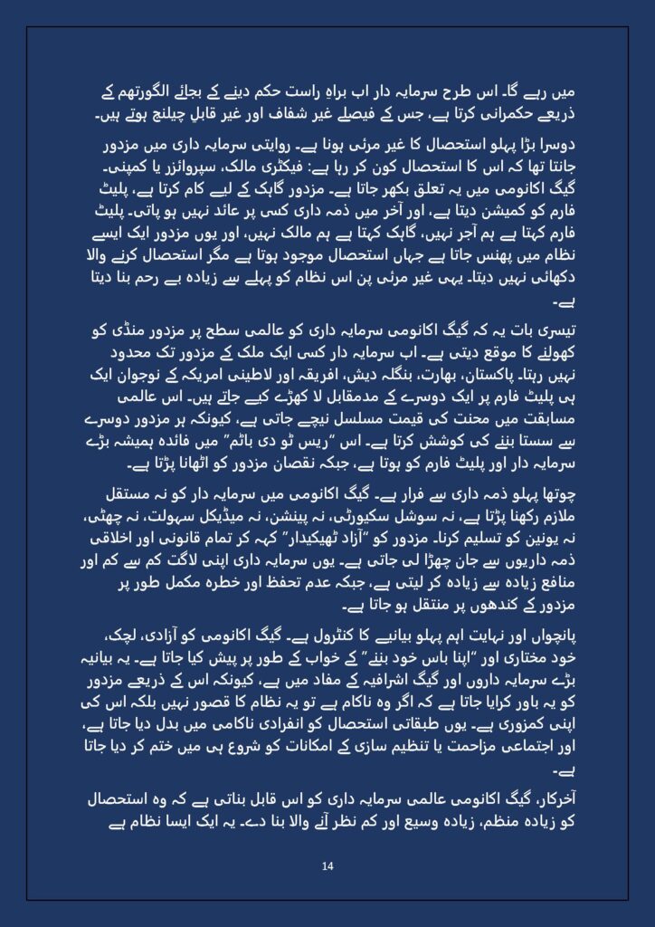 A key contribution of this work lies in its interrogation of the gig economy—often celebrated as flexible, empowering, and post-industrial. Here, gig labor is exposed not as freedom but as a new modality of discipline: work without security, wages without rights, and control without visible masters. The algorithm replaces the foreman; ratings replace collective bargaining; isolation replaces solidarity. What appears decentralized is, in fact, hyper-centralized capital operating behind an invisible interface.