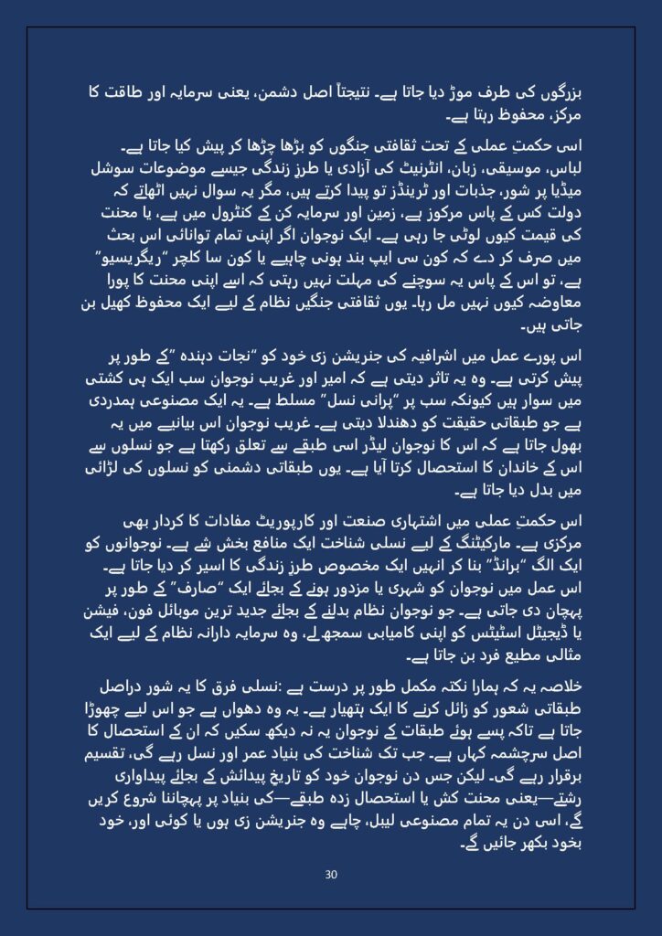 This is not a nostalgic return to old slogans, nor a rejection of new media. It is a call for analytical clarity and political honesty. Without class consciousness, generational politics risks becoming another tool of neoliberal containment. With it, however, the same generation holds the potential to articulate a new, grounded, and transformative politics.